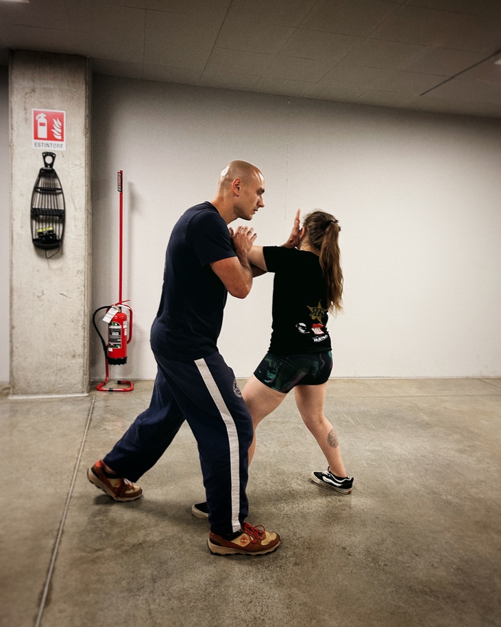 Con le formatrici Nicole Criveletto (Business coach e esperta di empowerment e sviluppo personale), Maura Brunello (Sportiva e assistente), e il formatore Federico Marcante (Ex Militare, Istruttore di difesa personale) abbiamo esplorato sia l’aspetto fisico e corporeo della difesa — difficile da trasmettere per iscritto — sia soprattutto la prevenzione.
